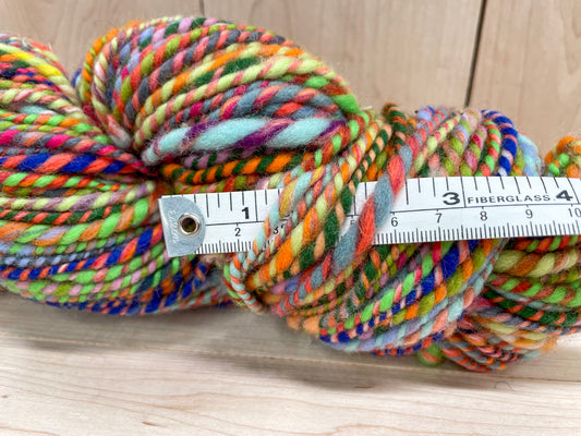 Handspun Bright Turquoise, Red, Orange, and Green Multicolor Yarn Using 100% Wool