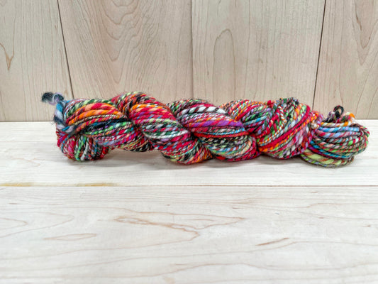 Handspun Bright Turquoise, Red, Orange, and Green Multicolor Yarn Using 100% Wool